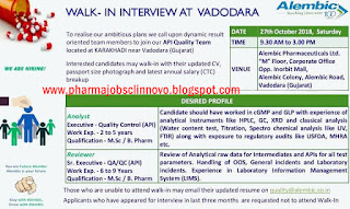 Piramal Enterprises Ltd Walk In Interviews for QC-Executives on 27th Oct & 4th Nov 2018 - Clinnovo! Walk-In for QC-Executive @ Piramal Enterprises Ltd Department: Quality Control Position: Executive Experience: 3 – 6 years with Handling Experience on HPLC, GC Qualification: B.Pharm / M.Pharm Date & Time: Saturday (27.10.2018) & Sunday (04.11.2018) between 10 AM to 2 PM. Please do not forward resume Venue: Piramal Enterprises Limited Plot # 67-70, Sector 2, District: Dhar, Pithampur, Madhya Pradesh 454 775 India For more job information visit http://pharmajobsclinnovo.blogspot.com/ Visit us : www.clinnovo.com www.facebook.com/Clinnovotrainings
